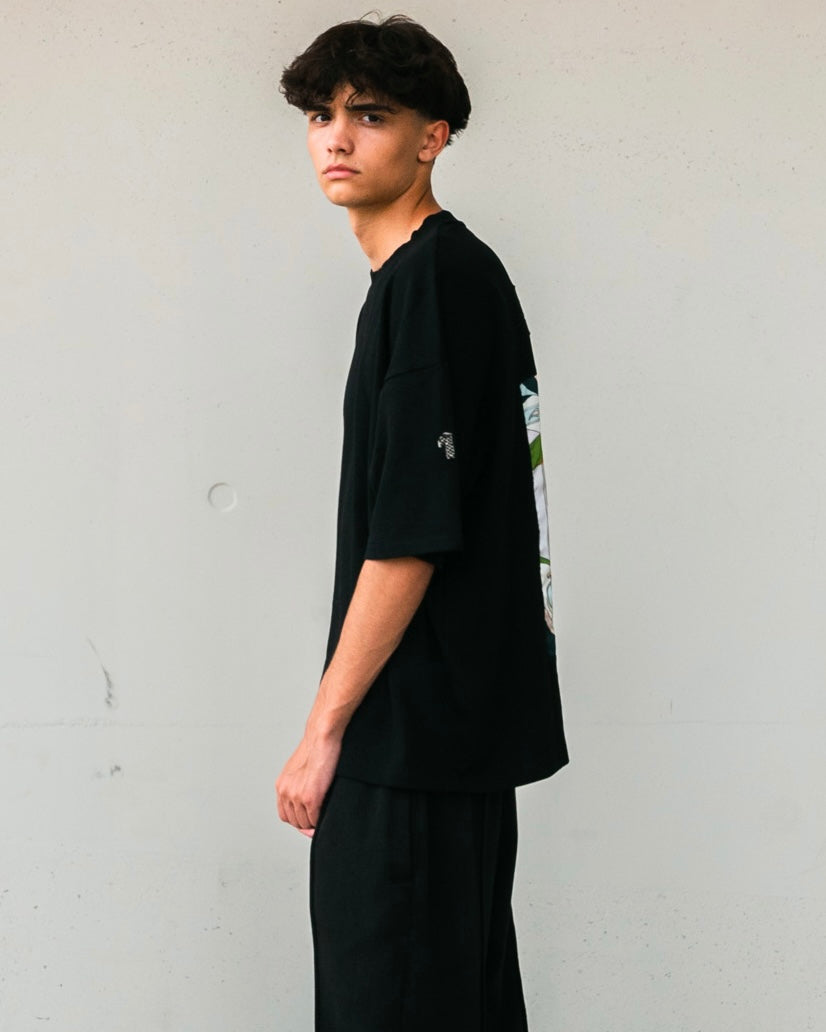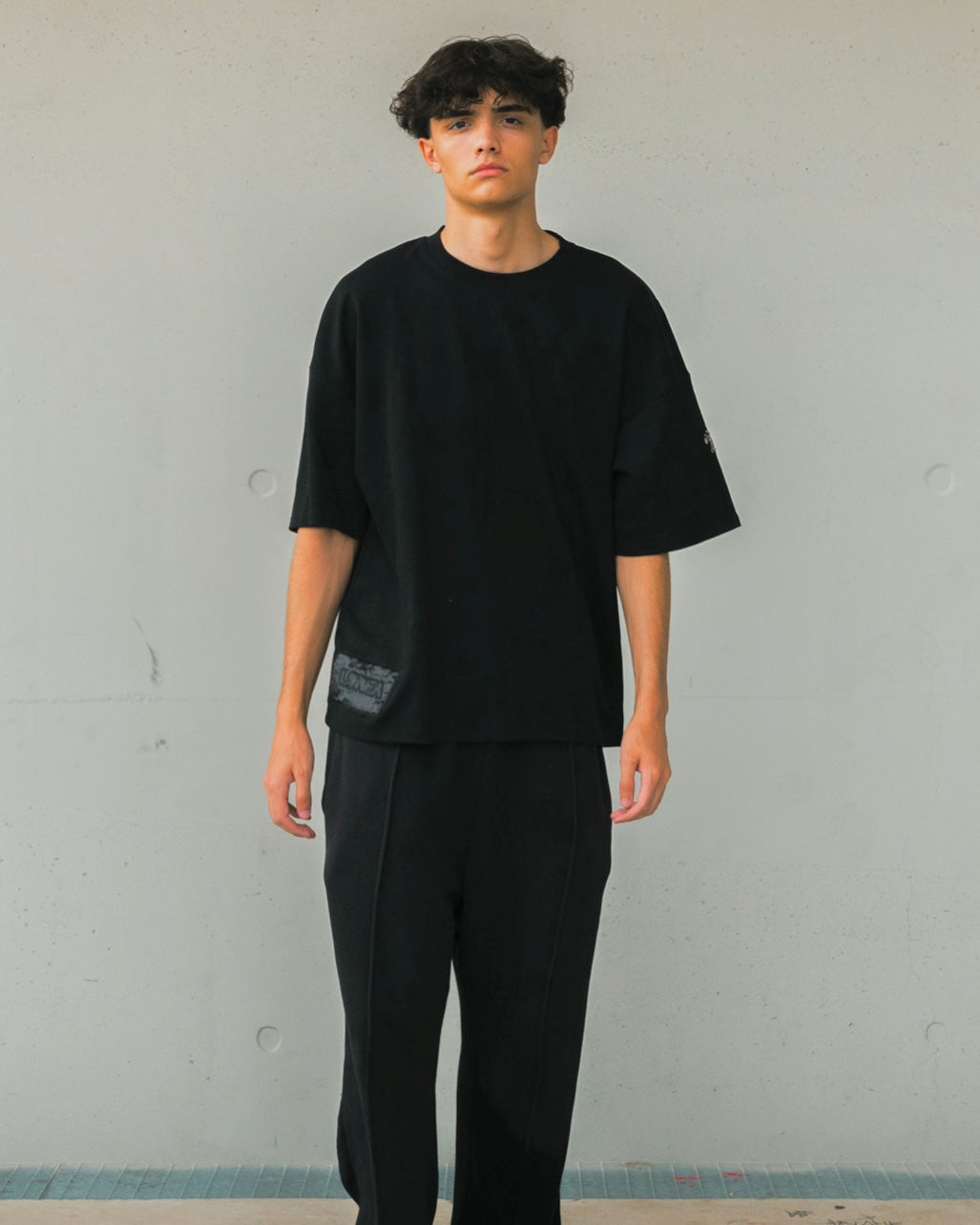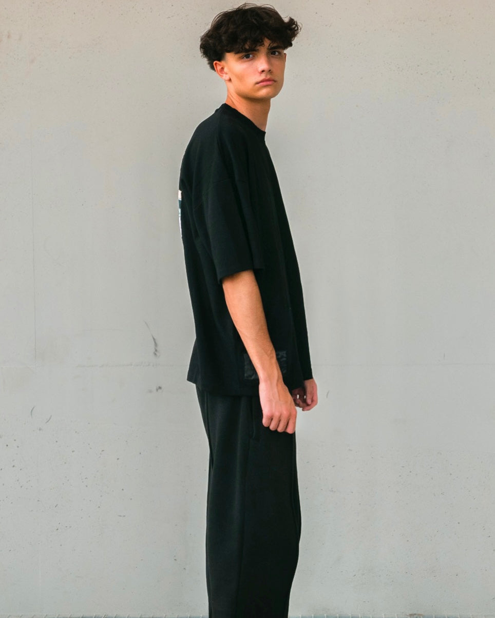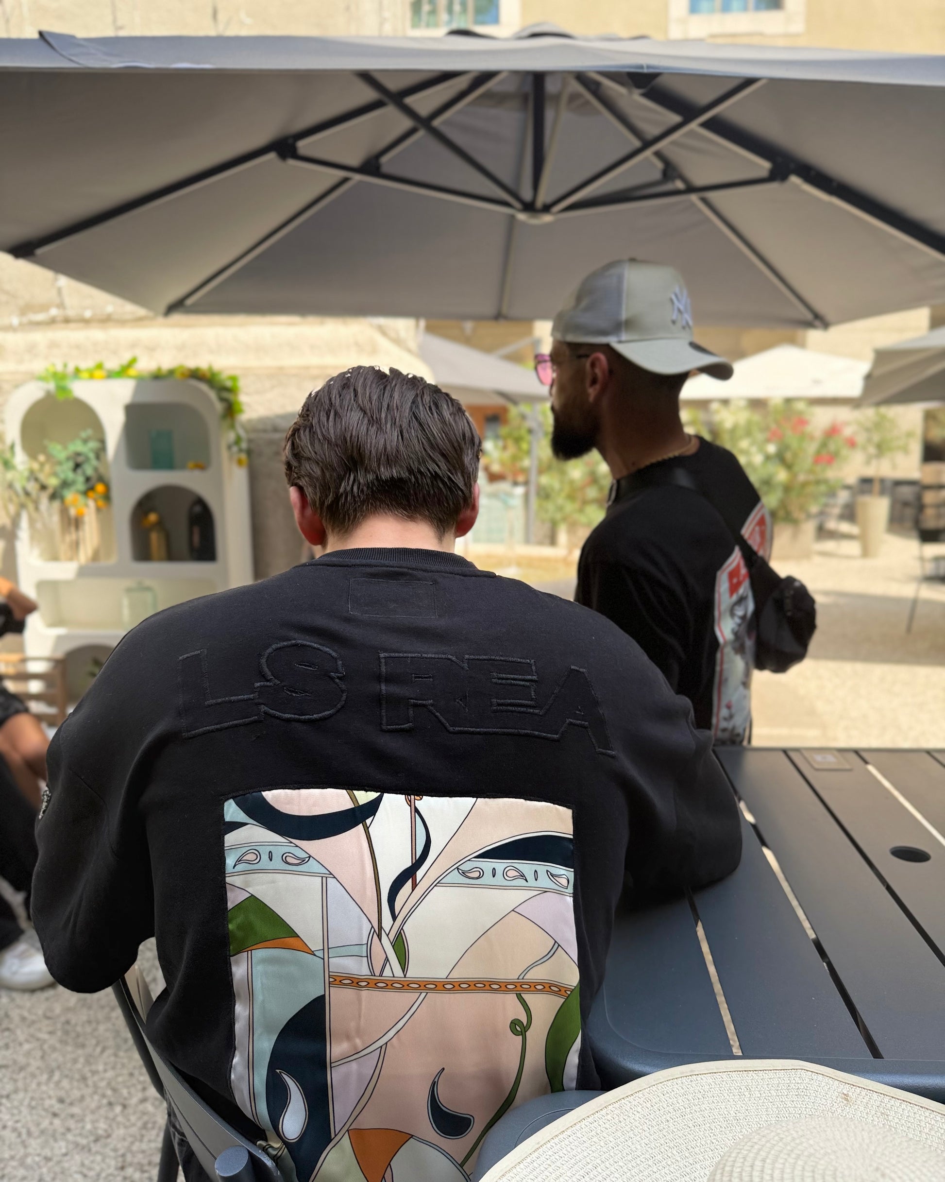 Un reflet d’émotions, d’équilibre et de profondeur. Juste au-dessus, les lettres LSREA, brodées à la main en noir dans le même tissu que le t-shirt, viennent parfaire l’ensemble, affirmant le caractère premium et engagé de cette pièce.
